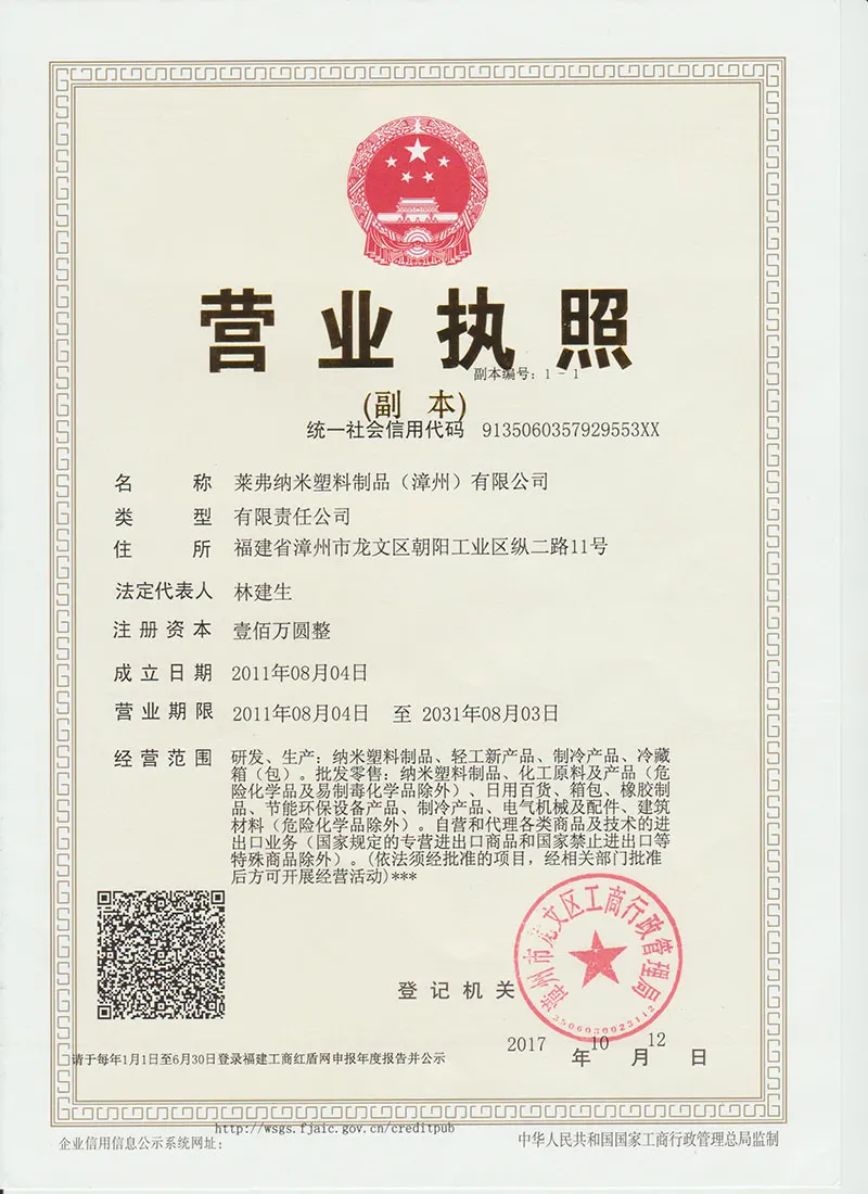 Company Name : Life Nano Plastic Product (Zhangzhou) Co., Ltd.